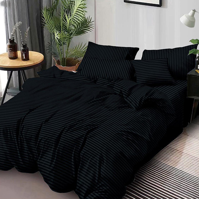 Едноцветно спално бельо от 6 части - черно с райе - CH6-19