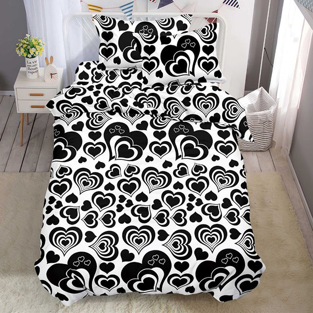 Комплект единично 3D спално бельо - черно и бяло със сърца - BG-28