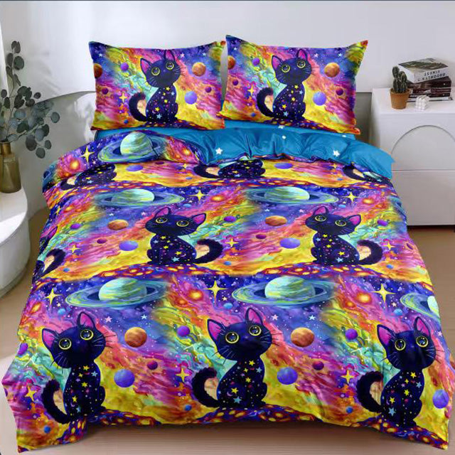 Спално бельо от поликотън – многоцветно с котки и планети – A50-727