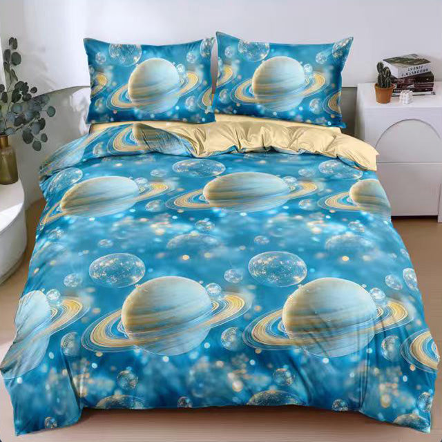 Спално бельо от поликотън – светлосиньо с планети – A50-719