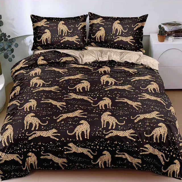 Спално бельо от поликотън – черно и бежово с леопарди – A50-692