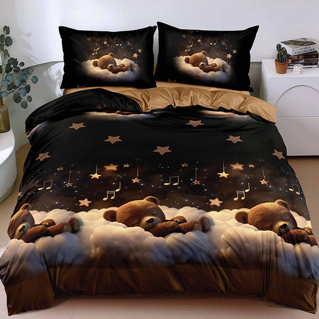 Спално бельо от поликотън – черно и кафяво със спящи мечета – A50-701
