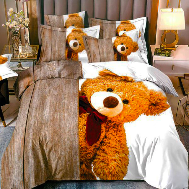 3D Единично спално бельо - бяло и кафяво с мече - S11-13