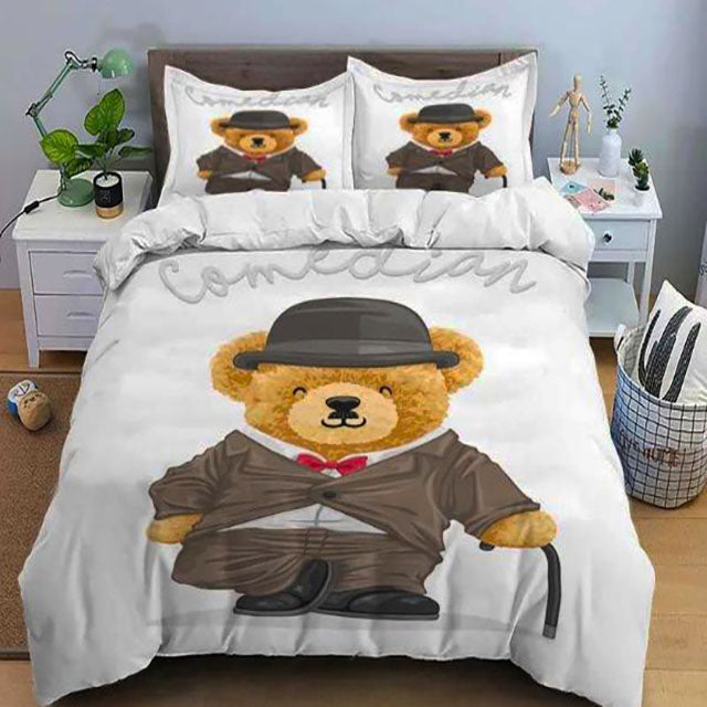 3D Единично спално бельо - бяло с мече - S11-26