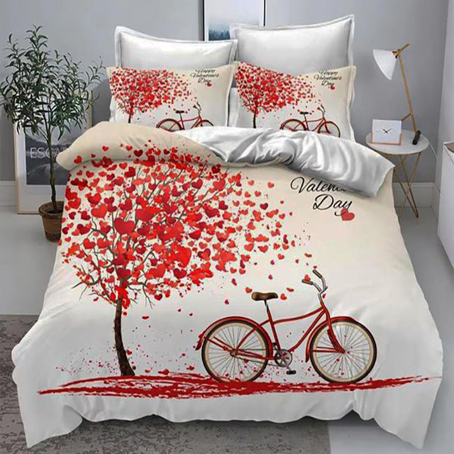 3D Единично спално бельо - бяло със сърчица - S11-12