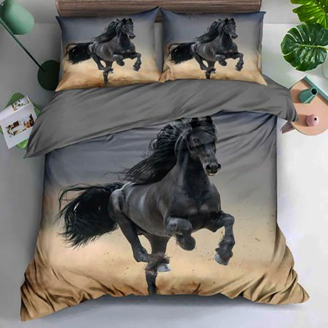 3D Единично спално бельо - сиво и кафяво с кон - S11-24