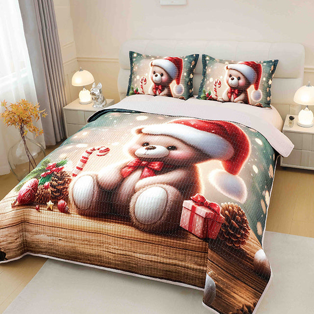 5D Коледна кувертюра от 3 части - сиво с мече - FQ3-27