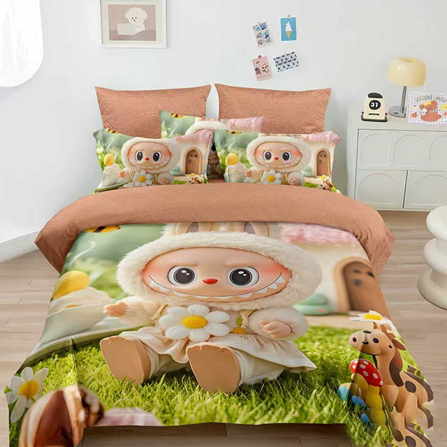 Детско спално бельо от 100% памук - цвят праскова с Лабубу - K13-12