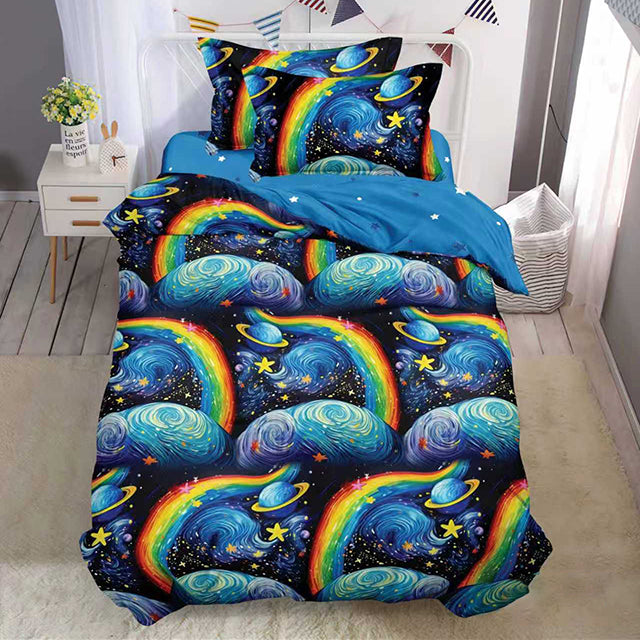 Единично спално бельо – синьо с планети и дъги – Y6-160