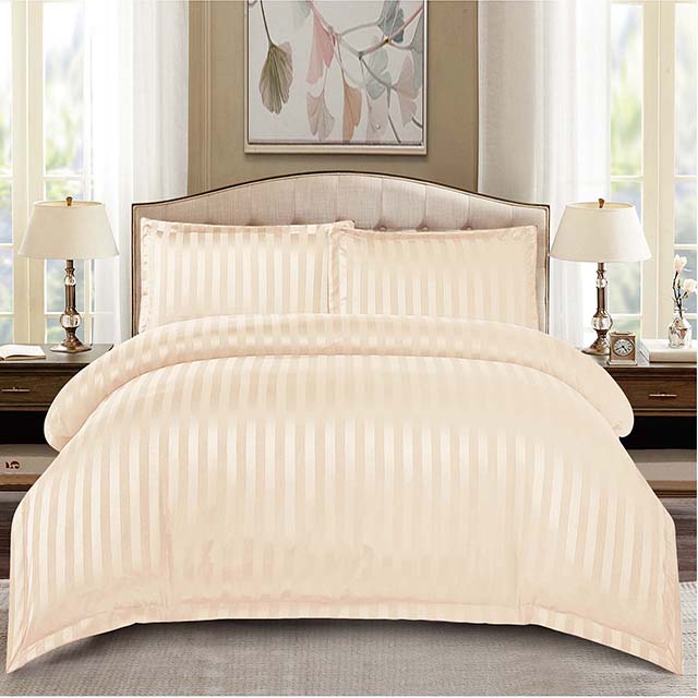 Едноцветно спално бельо с ластик - цвят шампанско с райе - AT101