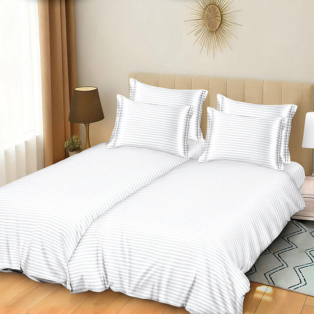 Комплект спално бельо с 2 плика - бял цвят с райе - W-01