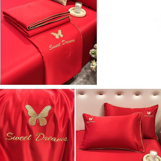 Върху покривалото и калъфките е изобразена бродирана пеперуда с надпис ”Sweet Dreams”, което допринася за стилния и елегантен вид на комплекта.