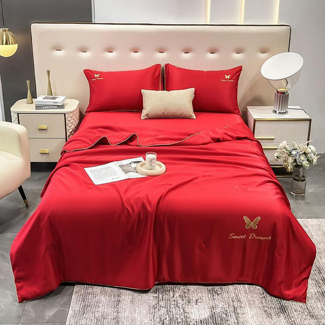 Луксозно спално бельо с нежно покривало и бродерия – червено – MS-05