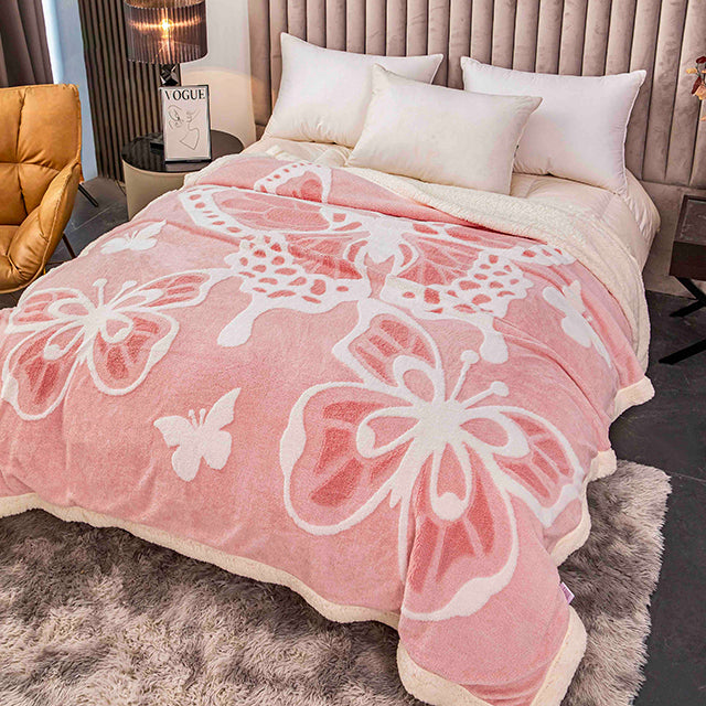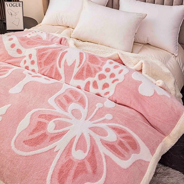 Плюшено 3D одеяло - Розов цвят с пеперуди - F3D-03