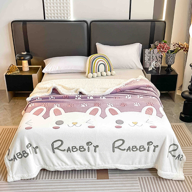 • Разпродажба -32% Плюшено одеяло - бяло и розово със зайчета и лапички