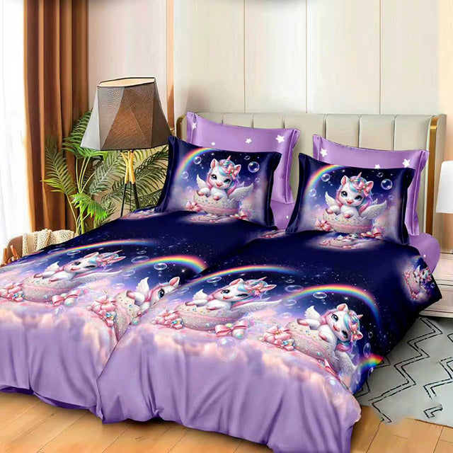 Спално бельо с 2 плика - лилаво и синьо с еднорози - K-66