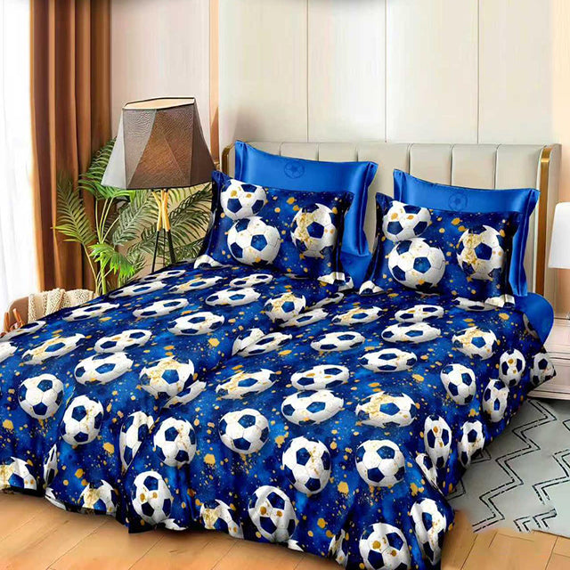 Спално бельо с 2 плика - синьо с футболни топки - K-68