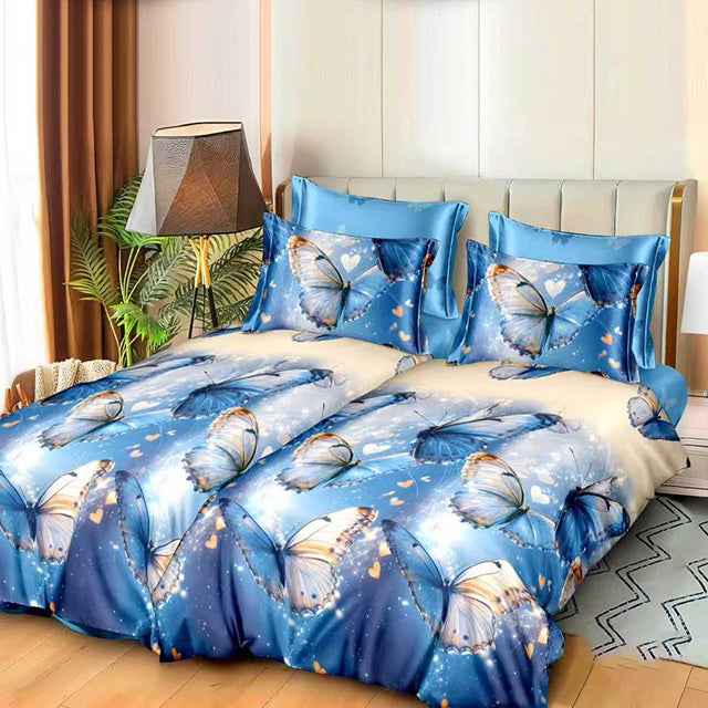 Спално бельо с 2 плика - сиво и синьо с пеперуди - K-64