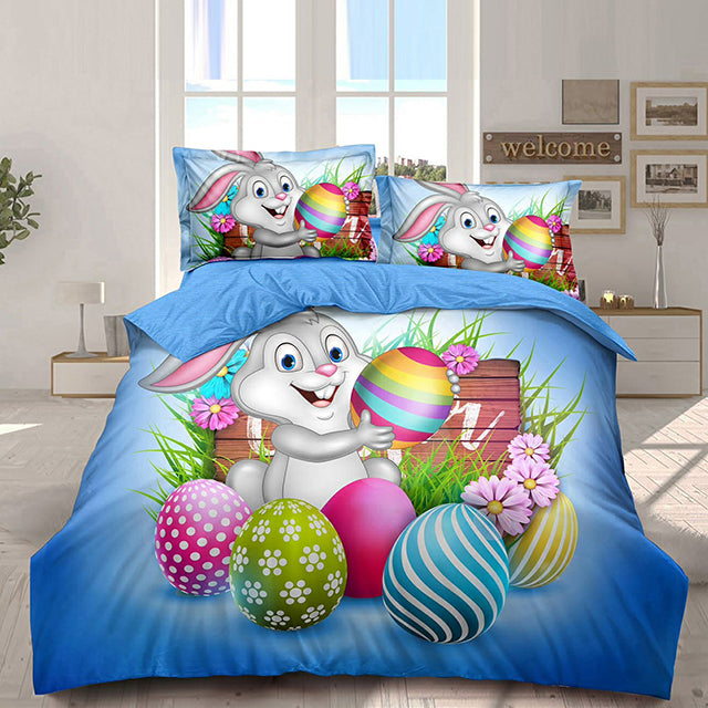 Великденско спално бельо 100% памук - синьо със зайче - M17-01